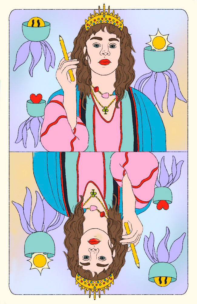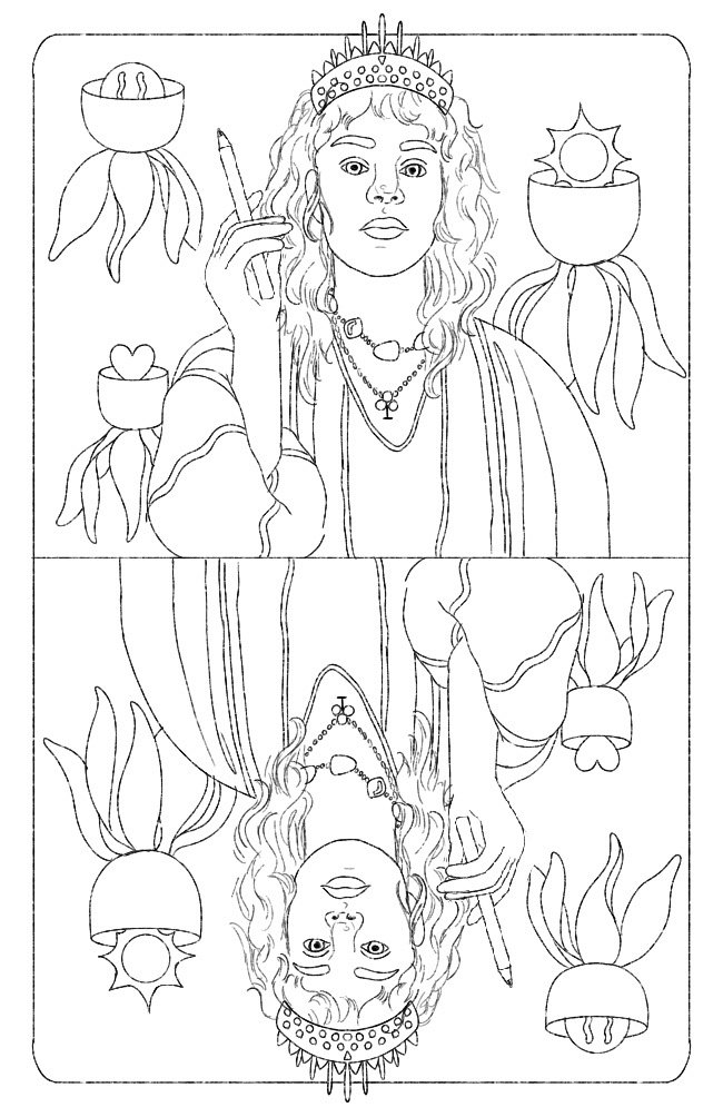 It was time for me to update my business card. I got my inspiration from playing too much Solitare and I wanted to do something fun with the Queen of the cards. If you scroll down you can see my sketches and my animated card :)