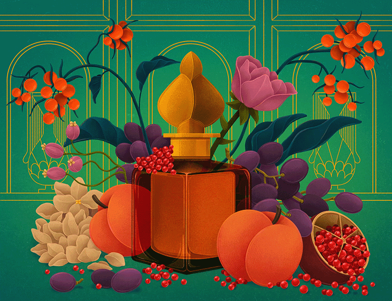 Perfume still life with animated butterflies, personal project 2023